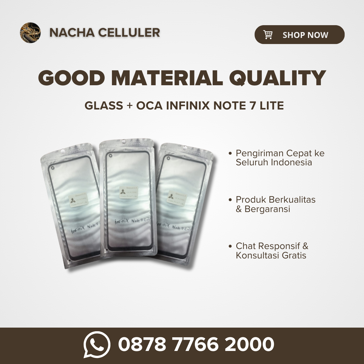 glass + oca infinix note 7 lite